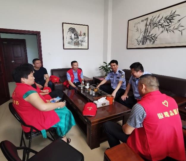 (圖為 翔安交警大隊(duì)領(lǐng)導(dǎo)與志愿者們熱烈交談)